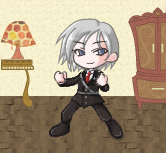ただのスーツじゃ面白くないので軍服化。見えるかな?